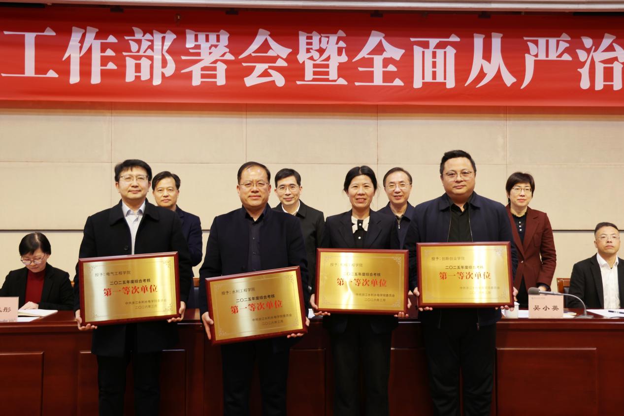 会议明确,2026年学校工作的总体要求是:树立和践行正确政绩观,深入学习贯彻习近平总书记关于教育的重要论述、考察浙江重要讲话精神,全面贯彻党的二十大和二十届历次全会精神以及省委十五届七次、八次全会和新春第一会精神,与时俱进贯彻“贺信精神”,全面落实学校第二次党代会部署要求,紧扣立德树人根本任务,做深做透“两篇大文章”,积极打造水科学研究高地和水文化发展高地,不断增强水利水电办学特色与核心竞争力,迈好全面建设高水平应用型大学“三步走”第一步,确保“十五五”高质量有特色发展实现良好开局。